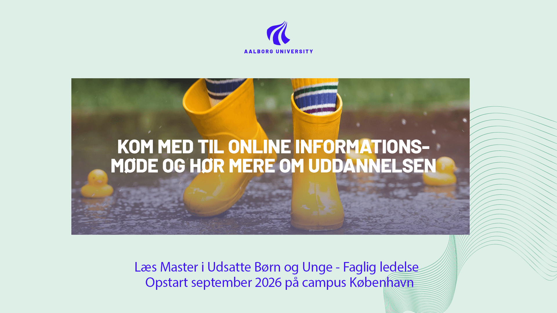 Velkommen til vores online informationsmøde om Master i udsatte børn og unge! Her kan du få et klart indblik i, hvordan uddannelsen kan styrke din faglige ledelse og løfte kvaliteten af dit arbejde med udsatte børn og unge.
